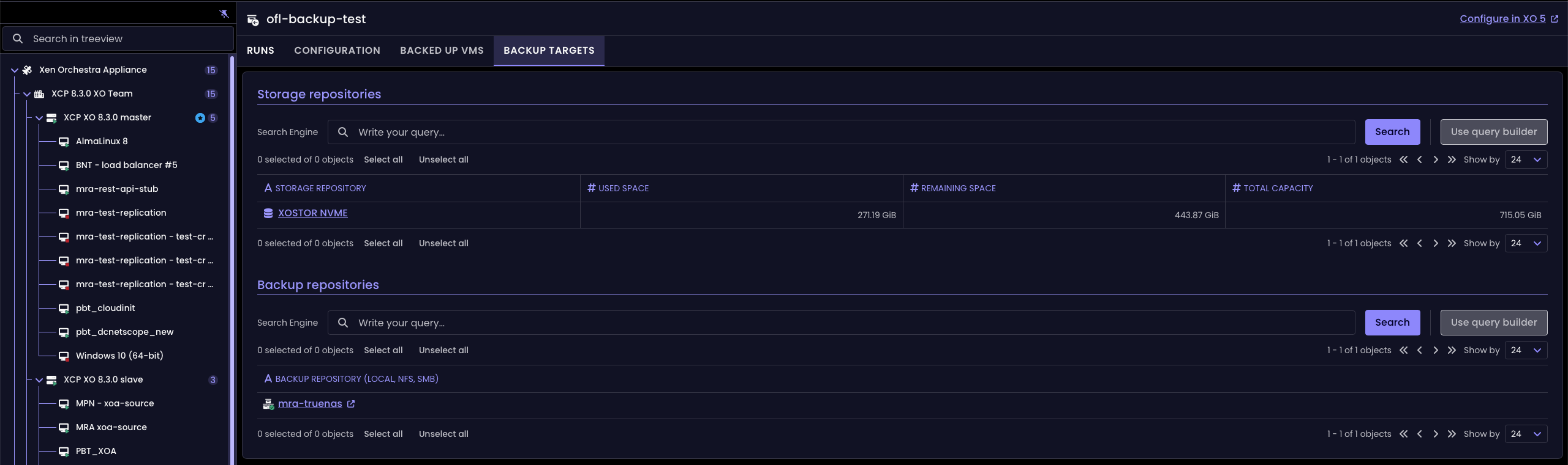 XO 6 now includes a dedicated Backup Targets view, which lets you check all backup destinations configured in your environment, at a glance.