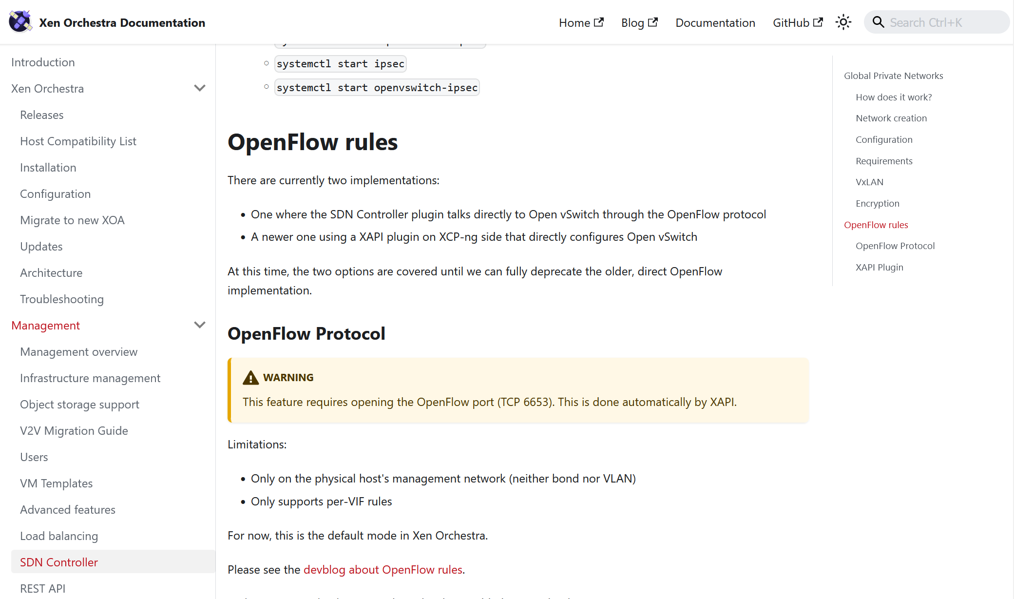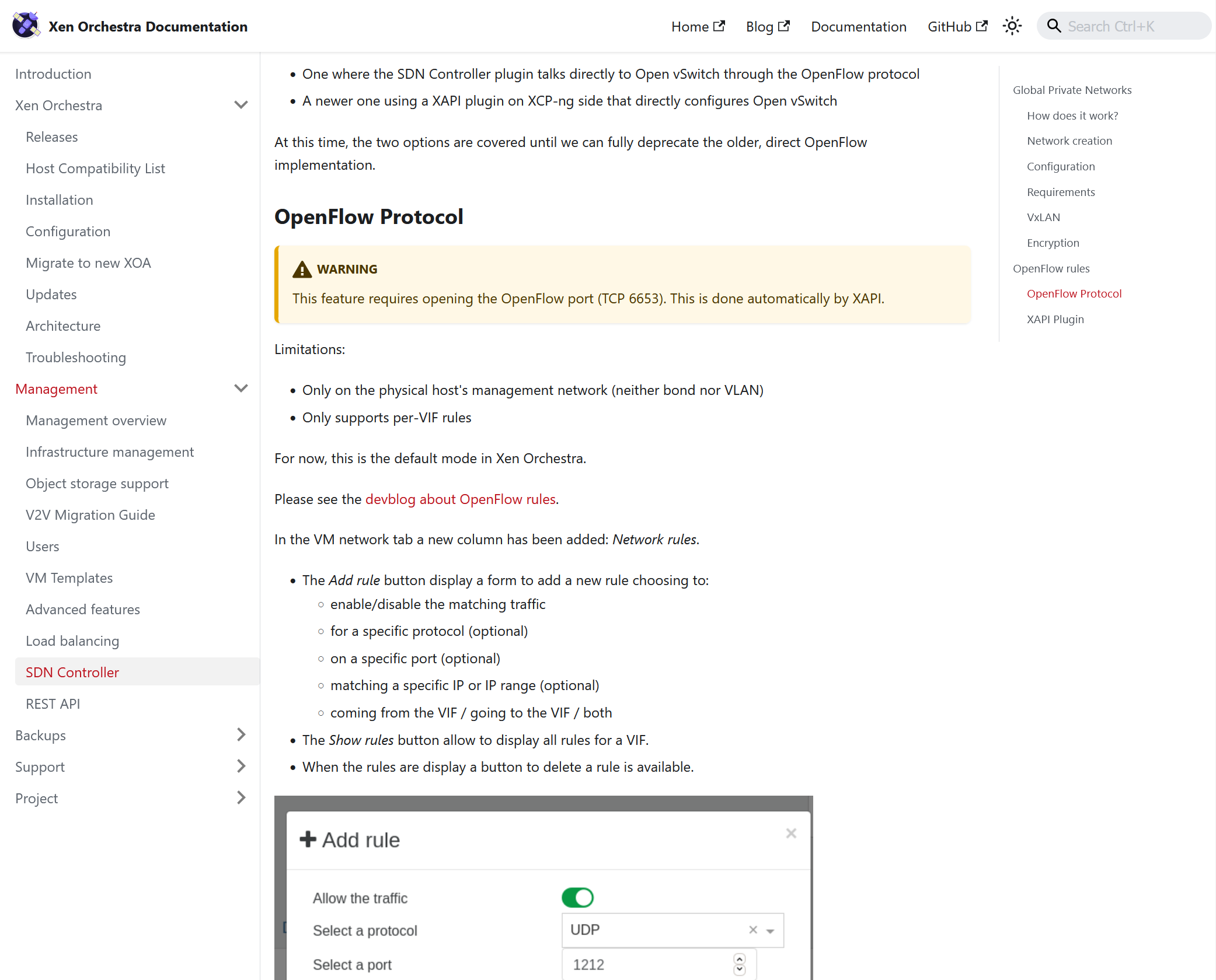 This update builds on the existing SDN Controller page, with a clear guide for anyone wanting to manage network flows programmatically through Xen Orchestra.