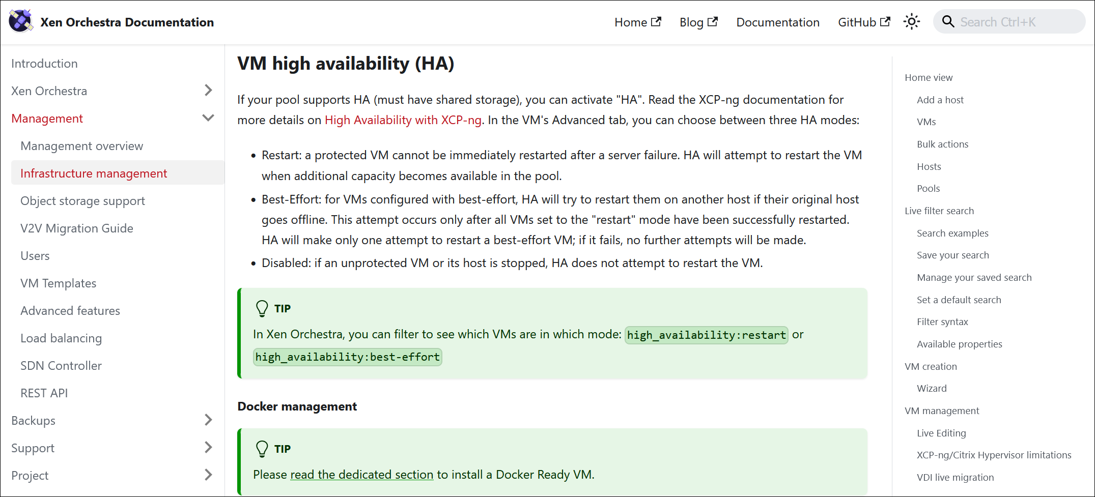 The High Availability section of the XO documentation has been expanded, with practical information on how to set up and use HA effectively. In addition, this section now links to the up-to-date version of the XCP-ng documentation (instead of the XCP-ng blog posts).